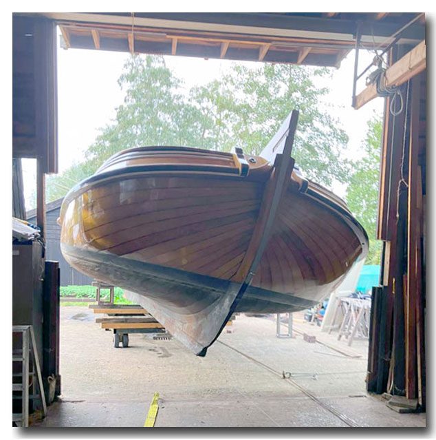 De romp was weer helemaal dicht en alle nieuwe leggers en spanten zaten erin met uiteraard op de leggers en de spanten in teer gedoopt krantenpapier voor het behoud. Nu was het tijd om de binnenbetimmering terug te plaatsen. Het interieur was blank gelakt, maar Peter adviseerde dat je delen beter kon verven. Dat zou mooier en sfeervoller zijn. Suzan Out heeft die klus op zich genomen en het resultaat mag er zijn.